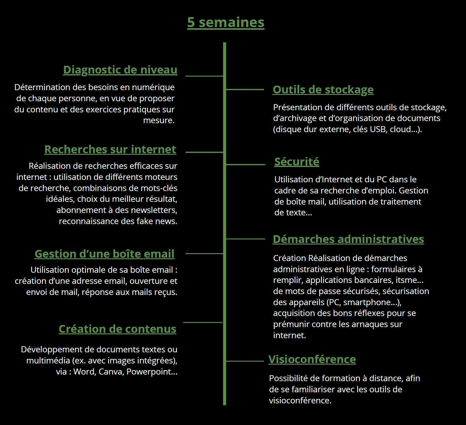 Vous êtes confrontés à des difficultés dans l’utilisation des outils numériques ? Vous avez besoin d’une remise à niveau ? Vous souhaitez étayer vos connaissances ? Le module compYOUter a pour vocation de permettre à tout demandeur d’emploi de venir développer ses compétences numériques dans le cadre de ce programme collectif.
